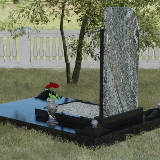 Кому подойдет: Данная модель является универсальной и гармонично впишется в мемориальный комплекс как для мужчины, так и для женщины. Асимметричная форма с плавным изгибом придает памятнику определенную легкость, что часто выбирают для оформления захоронений матерей или жен. В то же время строгая вертикальная колонна и золоченая символика делают его подходящим для увековечивания памяти отца, брата или главы семейства. Это выбор тех, кто ценит эстетику минимализма, надежность натуральных материалов и хочет подчеркнуть преемственность поколений и крепость семейных уз.