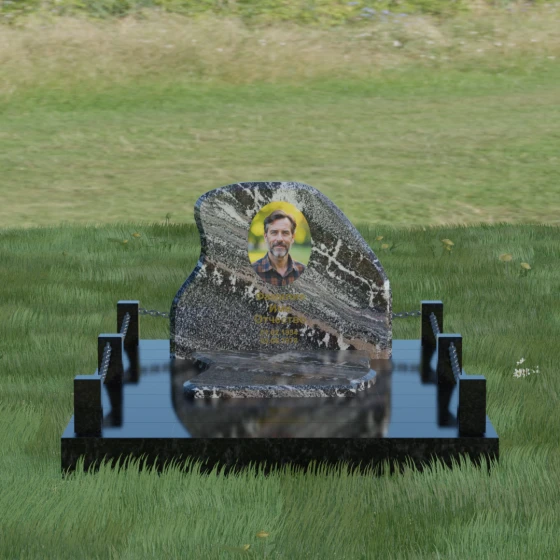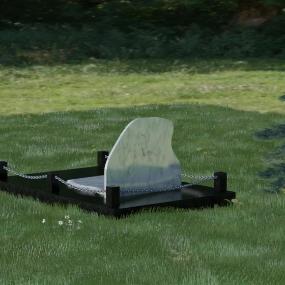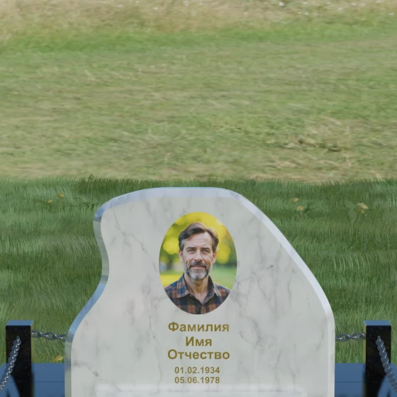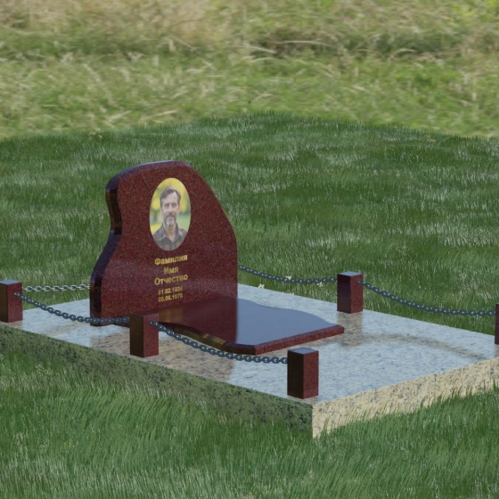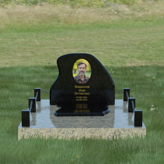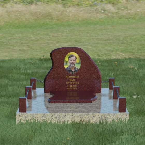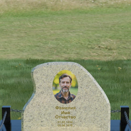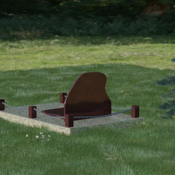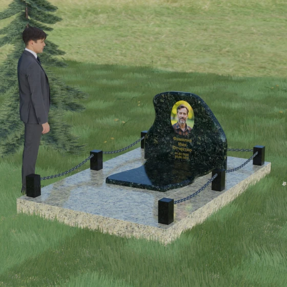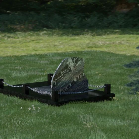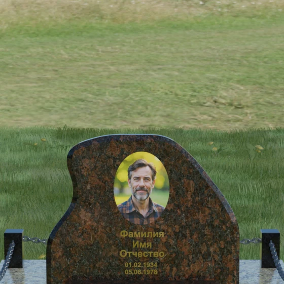 Плавная волна на камне — это символ вечного движения души, ее перехода в иное состояние, а строгий цоколь и цепи олицетворяют защиту и нерушимость семейных уз.