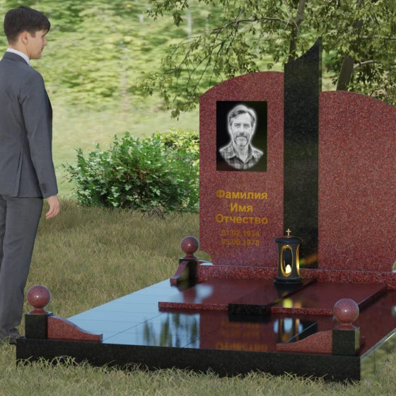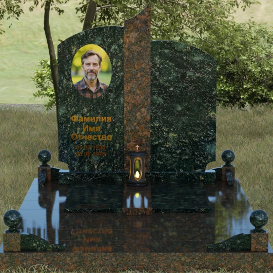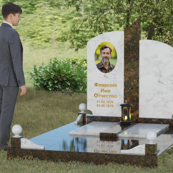 Чтобы мемориал максимально точно отражал характер ушедшего близкого человека, мы предлагаем выполнение этой модели в 8 различных цветовых решениях. Вы можете выбрать классическую строгость гранита Габбро-диабаз, благородную зелень Балтик грин или небесное мерцание Блю Перл. Для создания более теплых композиций идеально подойдет гранит Дымовский или насыщенный красный Лезниковский. Если вы хотите подчеркнуть чистоту и светлую память, обратите внимание на белоснежный мрамор Тассо или лаконичный гранит Мансуровский. Сочетание основного темного камня с контрастной вставкой из гранита Амфиболит позволит создать уникальный визуальный ритм.