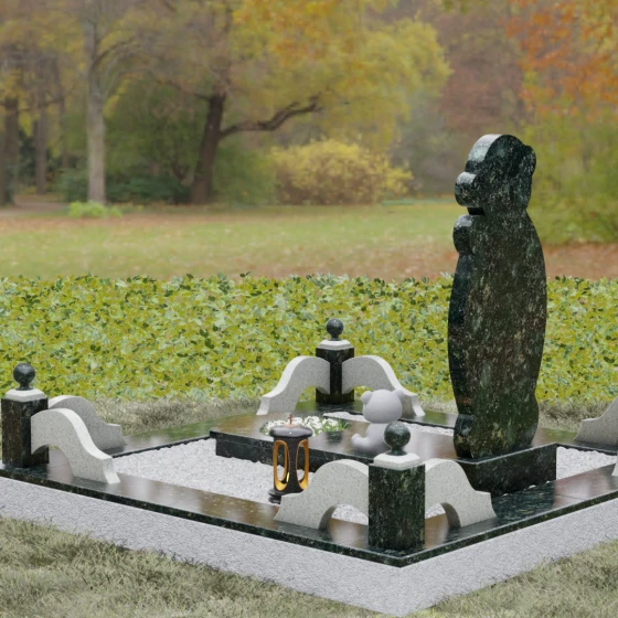 Для реализации этой идеи мы предлагаем выбор из 8 изысканных цветовых решений. В зависимости от желаемого настроения, вы можете выбрать один из семи видов гранита: строгий Габбро-диабаз, благородный Дымовский, контрастный Амфиболит, нежный Мансуровский, величественный Лезниковский, глубокий Baltic Green или мерцающий Blue Pearl. Также доступно исполнение из белоснежного мрамора Тассо. Такое многообразие позволяет подобрать камень, который будет максимально точно отражать характер и внутренний мир близкого человека, создавая по-настоящему персонализированный облик мемориала.