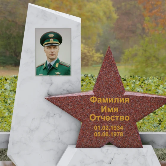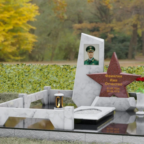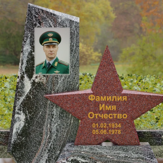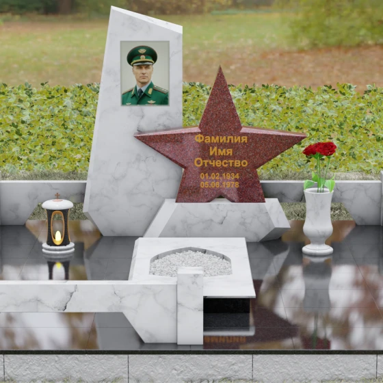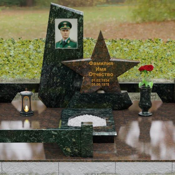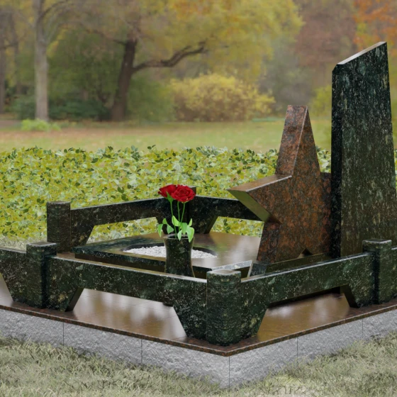 Кому подойдет: Это ритуальное изделие станет достойным выбором для увековечивания памяти военного, ветерана боевых действий или человека, чья профессиональная деятельность была связана с защитой Отечества. Символика звезды в сочетании со строгими линиями олицетворяет мужество, честь и верность идеалам. Благодаря своей величественной форме и архитектурной сложности, такой ансамбль подойдет для установки на почетном месте захоронения главы семьи, подчеркивая его высокий статус и значимость для потомков.
