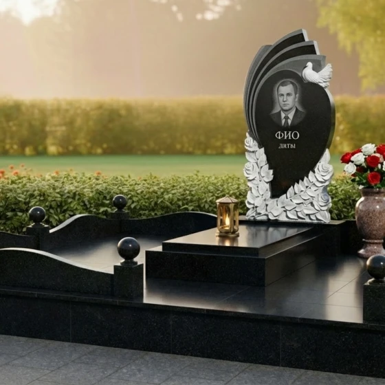 Форма стелы, с ее плавными изгибами и устремленностью ввысь, символизирует бесконечность души, ее переход в мир иной и вечный покой. Резные элементы – розы и голубь – несут глубокий сакральный смысл. Розы, с их нежными лепестками, традиционно ассоциируются с любовью, красотой и скоротечностью жизни, а голубь – с миром, чистотой и светлой душой усопшего. Общая композиция ритуального изделия призвана дарить утешение, напоминая о том, что любовь и память живут вечно, а ушедший человек обрел покой и умиротворение. Это надежный щит для памяти, оберегающий светлые воспоминания.