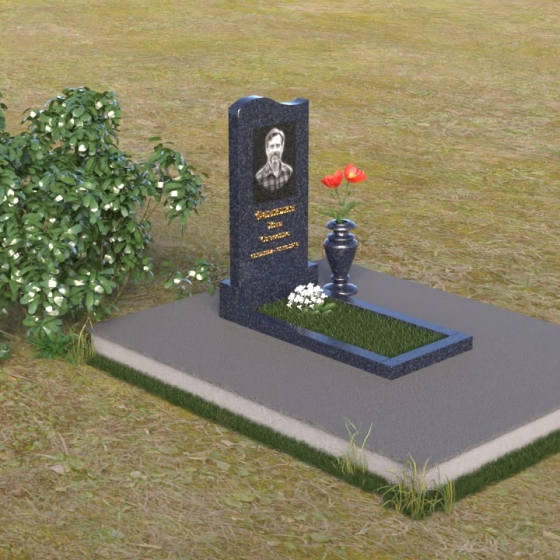 Представленная мемориальная композиция отличается лаконичностью и элегантностью. Ее строгие формы, смягченные плавными изгибами, символизируют как жизненный путь, так и обретение покоя. Верхняя часть стелы имеет мягкий, едва заметный изгиб, словно склоняясь в знак уважения. Грани стелы деликатно обработаны, что придает ей завершенный и благородный вид. На лицевой стороне выгравированы портрет усопшего и памятные надписи, выполненные с особой тщательностью.