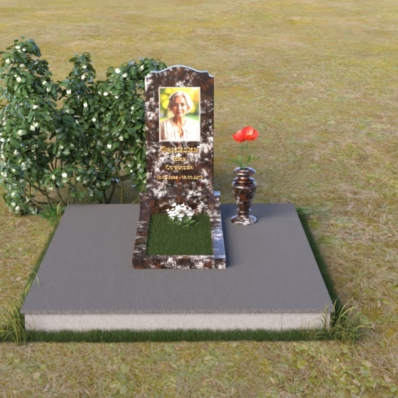 Плавные линии и обтекаемые формы этого надгробия символизируют покой и умиротворение, которые обретает душа после земных испытаний. Волнообразный верх стелы напоминает о небесном своде, о бесконечности бытия и о надежде на вечную жизнь. Зеркальная полировка камня, отражая окружающий мир, говорит о неразрывной связи между миром живых и миром ушедших. Она словно приглашает нас заглянуть вглубь себя, вспомнить о своих корнях и задуматься о смысле жизни.